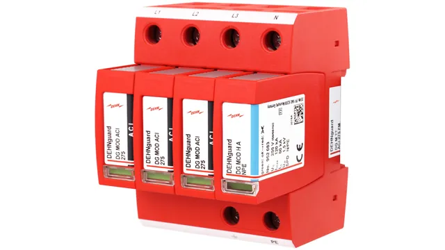 Multipole DEHNguard M ACI surge arrester type 2with integrated ACI switch / spark gap combination consisting of a base part and plug-in protection modules.