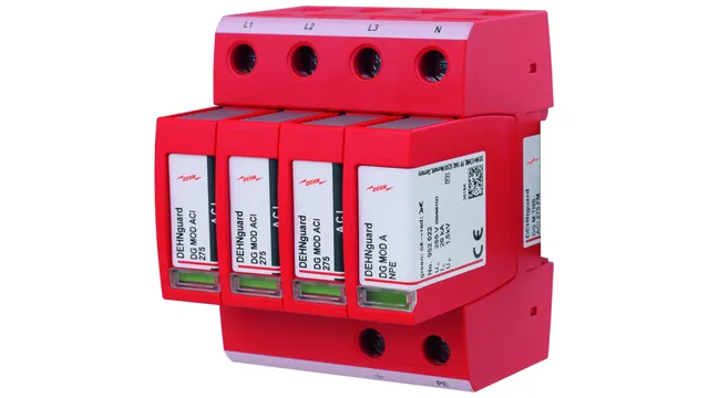 Multipole DEHNguard M ACI surge arrester type 2 according to EN 61643-11 with integrated ACI switch / spark-gap combination consisting of a base part and plug-in protection modules.