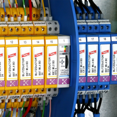Designed especially for process automation systems, the BLITZDUCTOR ML4 BPD 24 protects two pairs of 24 V DC systems with an earthed negative pole. It features integrated overload protection and easy testing capabilities with the LifeCheck monitoring system, an improved remote indication contact feature.
