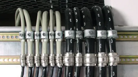 Lightning-current-tested shield terminals with accessories for lightning equipotential bonding of cable shields and aluminium enclosures for DIN rail mounted devices.