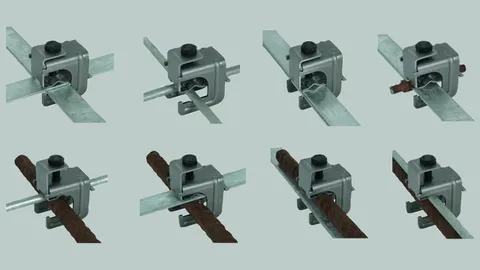 Clamps for combining round and flat conductors and for connecting structural elements. Expansion, bridging and test joint components for connection to the earth-termination system.