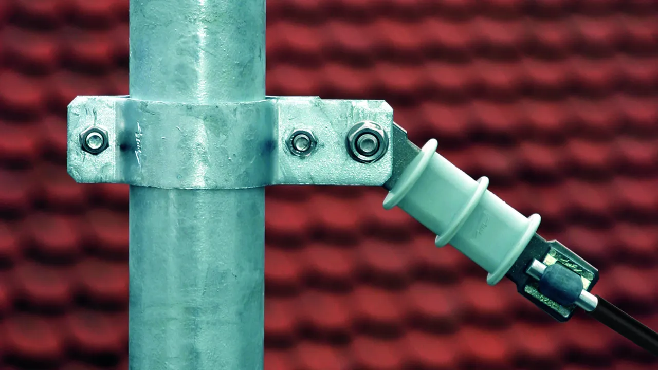 • For indirect connection of an overhead line roof pole to the external lightning protection system