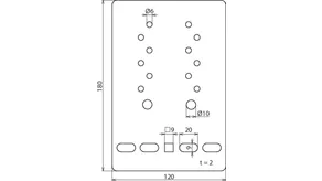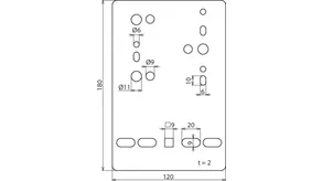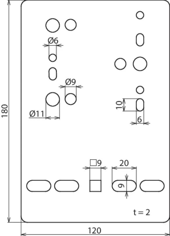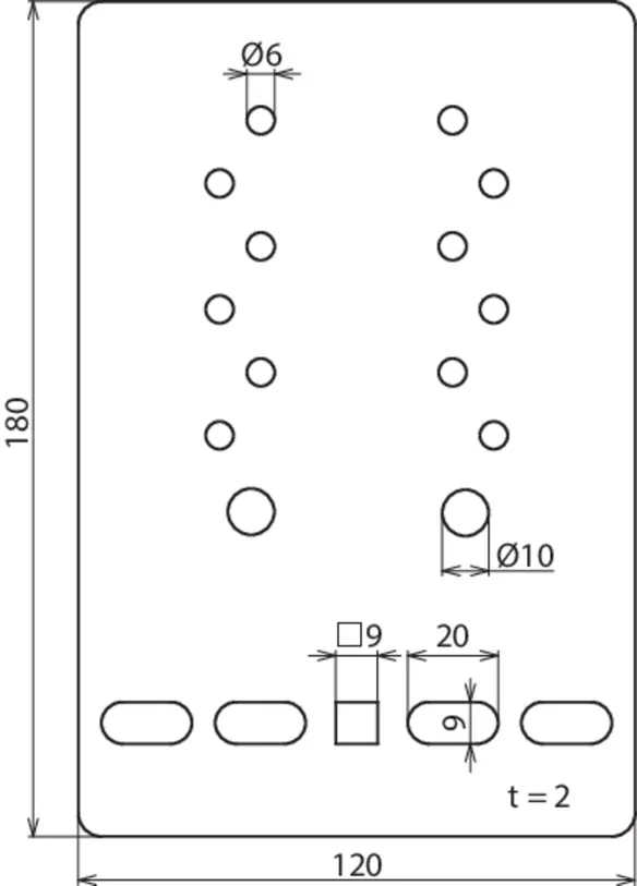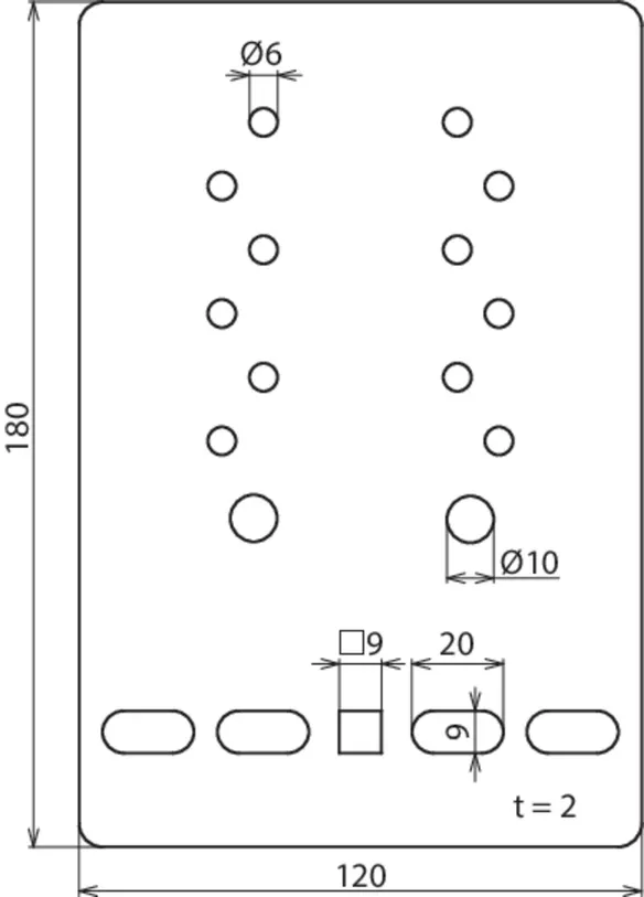 Fixing holes for wire cable tray [4x] 9 x 20 / [1x] 9 x 9 mm