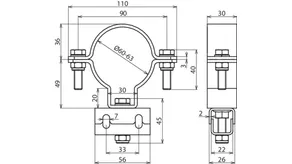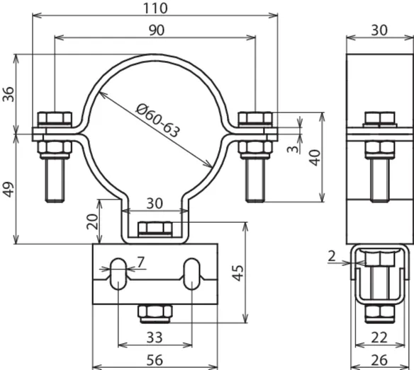 • For mounting on round pipe DN50 (60 mm)