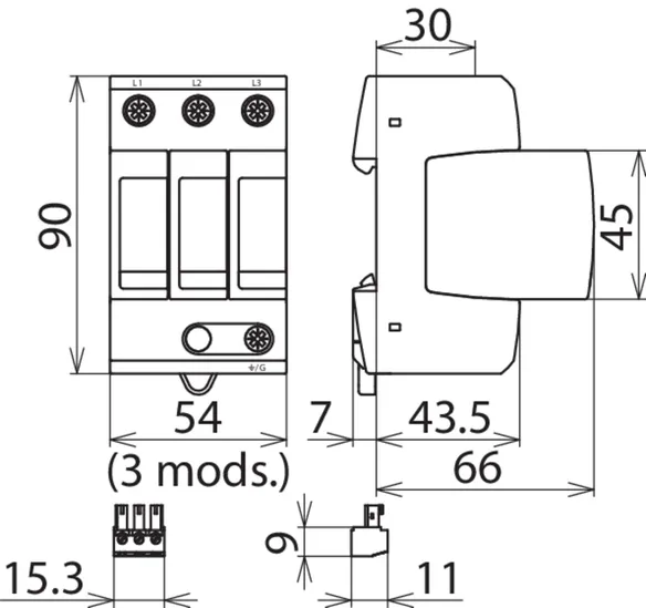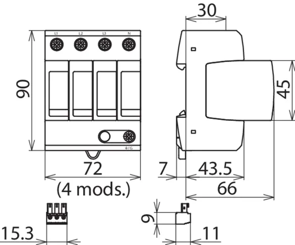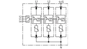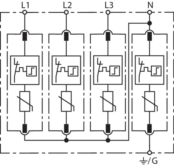 | Max. continuous operating voltage AC [L-N] / [L-G] / [L-L] / [N-G] (MCOV) | 385 V a.c. / 565 V a.c. / 770 V a.c./ 180 V a.c. |