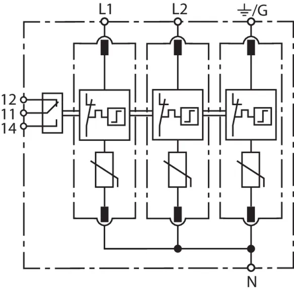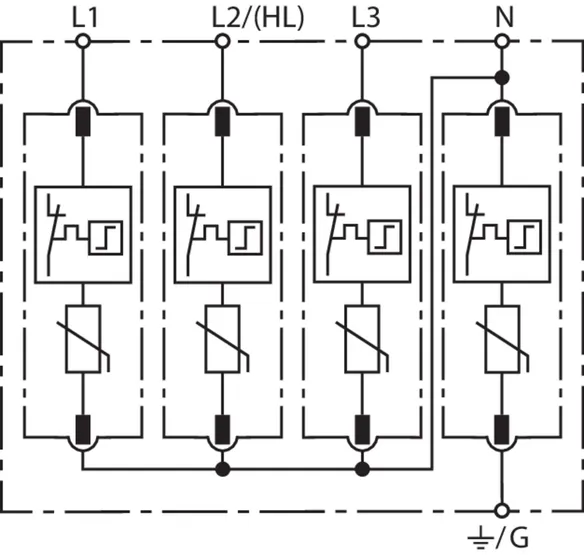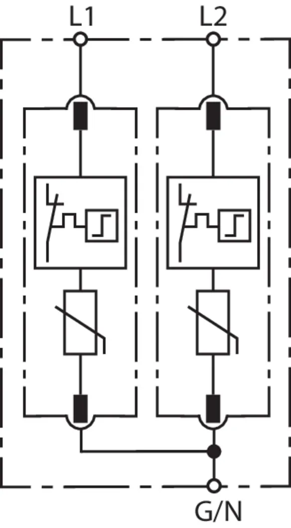 | Max. continuous operating voltage AC [L-N] / [H-N] / [L-G] / [H-G] / [L-L] / [L-H] / [N-G] | 230 V a.c. / 275 V a.c. / 410 V a.c. / 455 V a.c. / 460 V a.c. / 505 V a.c. / 180 V a.c. |