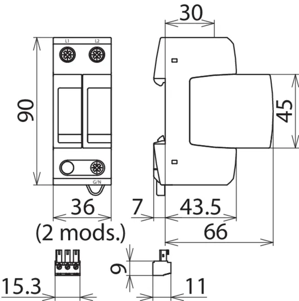 | Max. continuous operating voltage AC [L-N] / [L-G] / [L-L] / [N-G] (MCOV) | 180 V a.c. / 360 V a.c. / 360 V a.c. / 180 V a.c. |