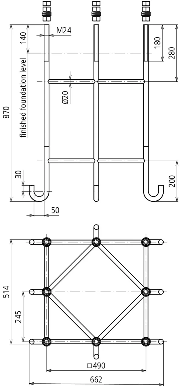 | Type of threaded bolt | 8x M24 (490 x 490 mm) |