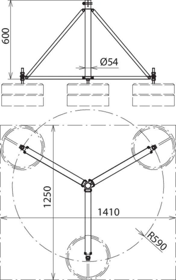 For air-termination rods D40, D50 and D60, DEHNiso Combi supporting tubes with air-termination rod / tip or HVI Conductor installed in / on the supporting tube.