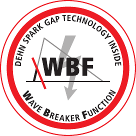 In the case of spark-gap-based type 1 arresters, the entire current flows through the type 1 arrester during the discharge process. Like a wave breaker, the incoming energy is greatly broken down, which significantly relieves the downstream SPDs. All type 1 arresters in the Red/Line product range feature the WBF wave breaker function.