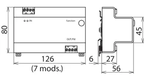 - Visual operating state indication (green) and floating remote signalling contact (break contact) for fault indication