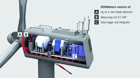 Detector for wireless recording of lightning current in the rotor blade.