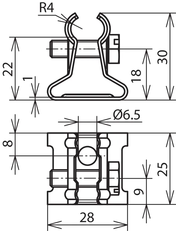 Conductor holder with claw, StSt Conductor holder with claw for wall mounting with M6 clamping screw, fixed conductor routing