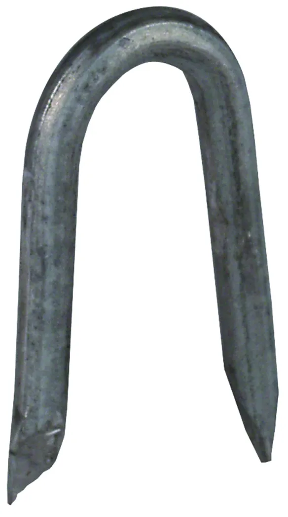 Staples for fixing conductors on objects like wooden masts.