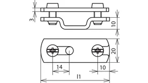 Flat strip holder with clamping piece, flat design, with slot, StSt