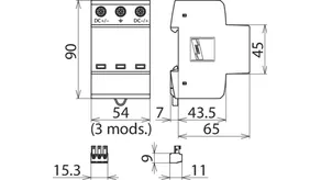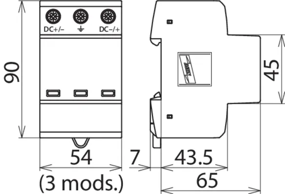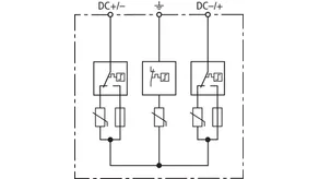 | Max. discharge current (8/20 µs) [(DC+/DC-) --> PE] (Imax ) | 25 kA |