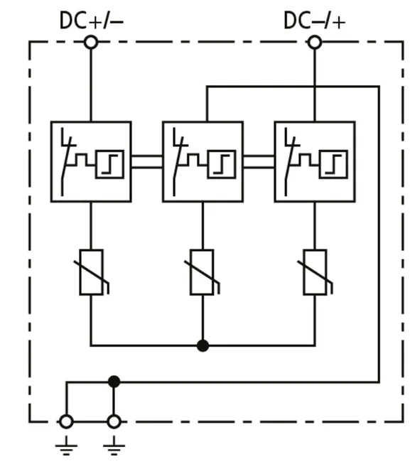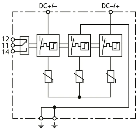 | Total discharge current (10/350 µs) [DC+/DC- -> PE] (Itotal ) | 12.5 kA |