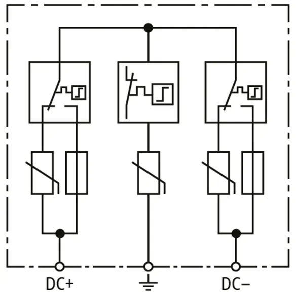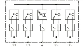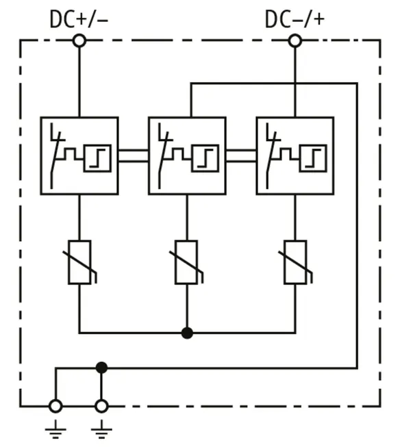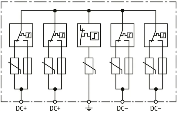 | Max. discharge current (8/20 µs) [(DC+/DC-) --> PE] (Imax ) | 40 kA |