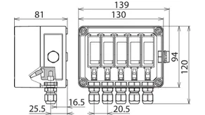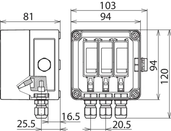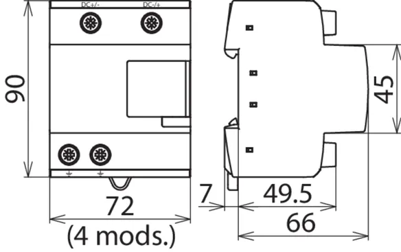 | Max. discharge current (8/20 µs) [(DC+/DC-) --> PE] (Imax ) | 25 kA |