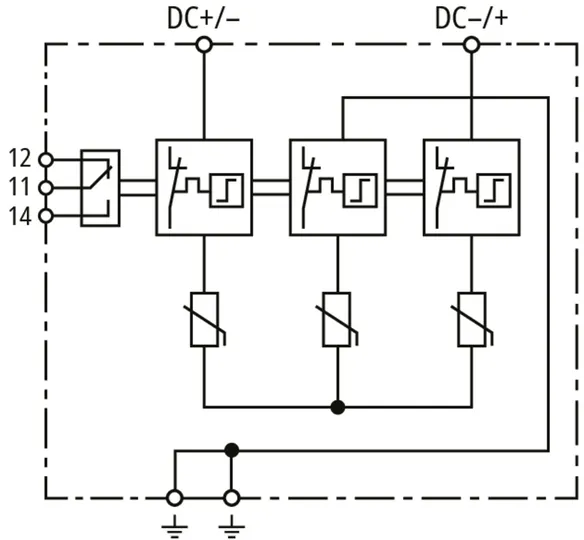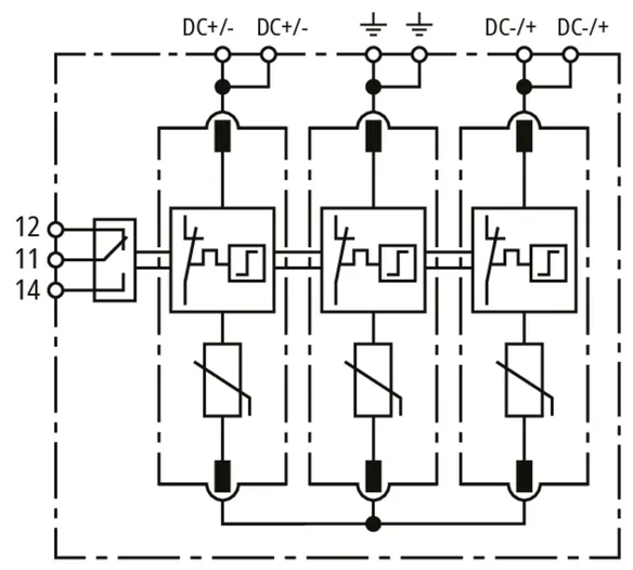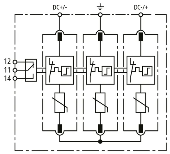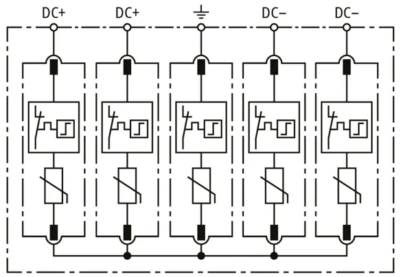 | Nominal discharge current (8/20 µs) [(DC+/DC-) --> PE] (In ) | 12.5 kA |