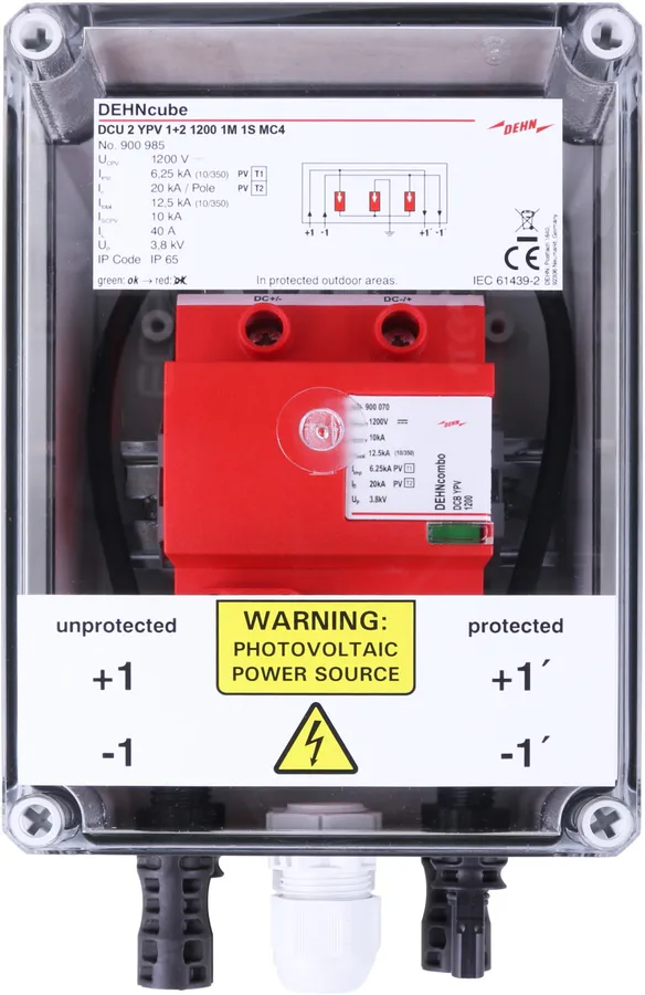 | Nominal discharge current (8/20 µs) [(DC+/DC-) --> PE] (In ) | 20 kA |