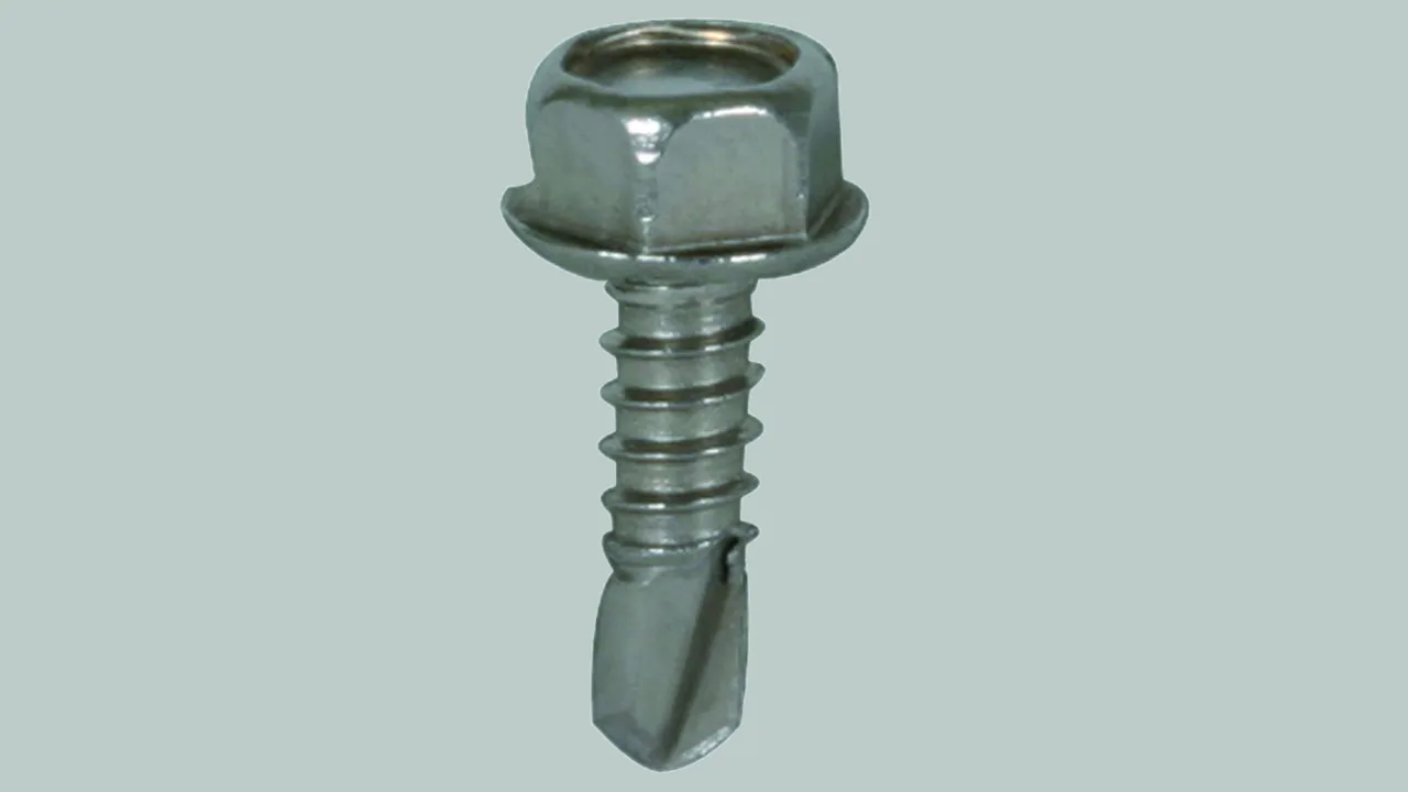 Self-tapping with hexagon head and collar, for connecting bridging brackets, braids or cables, e.g. to the metal capping of the roof parapet (for materials of ≥ 2 mm thickness).