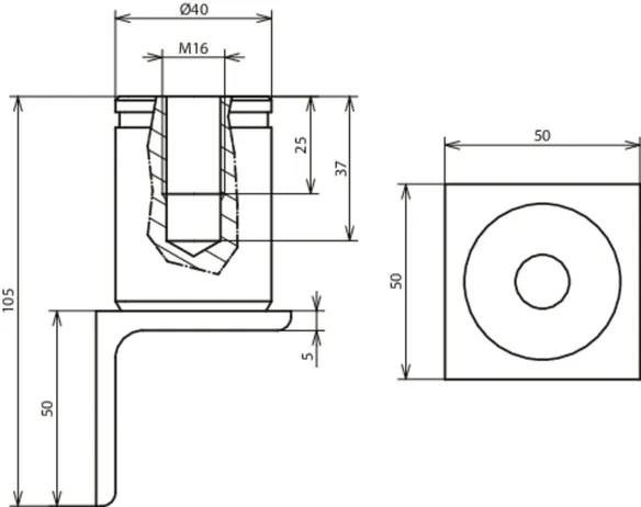 | Angle dimensions (l x w x d) | 50 x 50 x 5 mm |