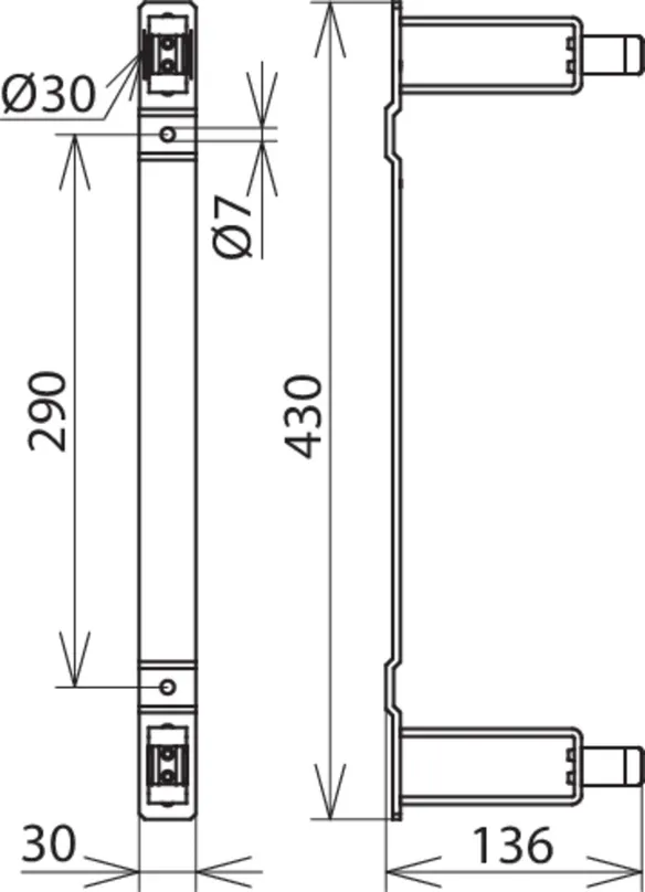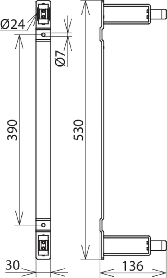 Hole spacing: 290/390 mm, holes: Ø7 mm