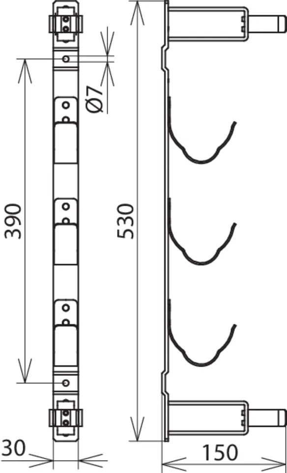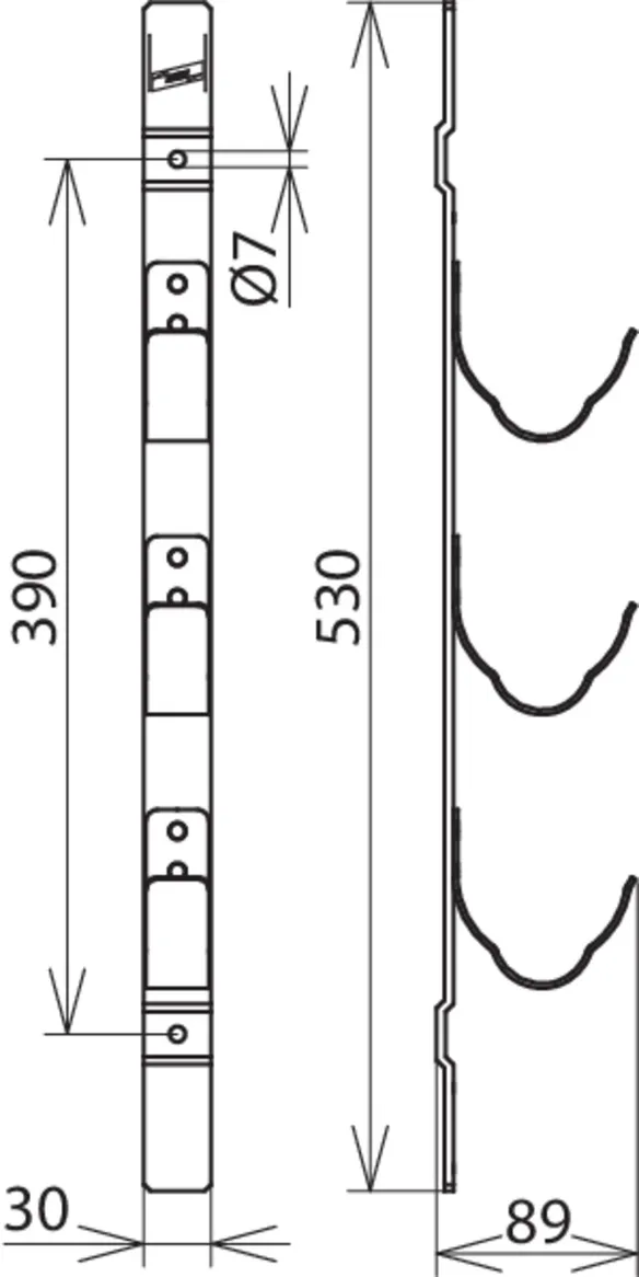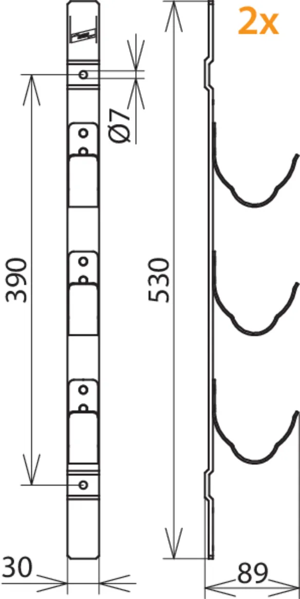 Wall-mounted, holes Ø7 mm