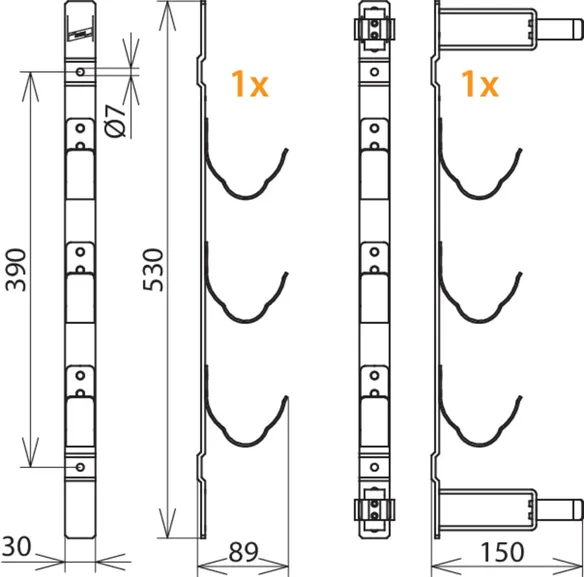 Dimensions 530 x 30 x 149 mm