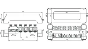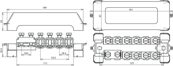 10 conductors 2.5-95 mm2 (solid / stranded) or Rd Ø10 mm.