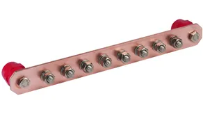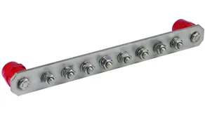 Equipotential bonding bar, industrial design, 10 terminals w. insulators, Cu