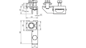Connection for: 1 conductor Rd Ø10 mm or 1-2 conductors Rd Ø6-8 mm or 4-50 mm2 (solid / stranded).