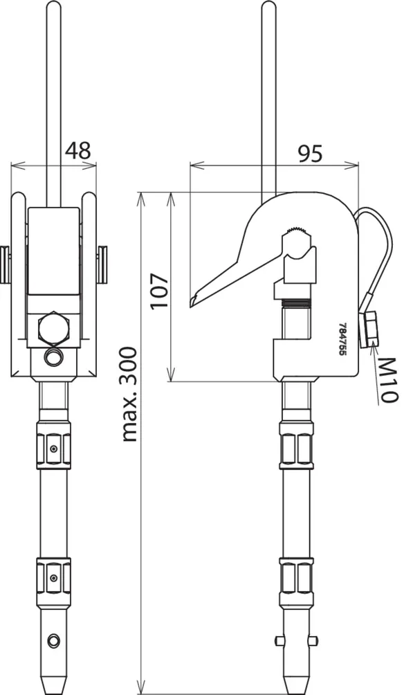 With contact electrode and flexible threaded T pin shaft according to DIN 48087.