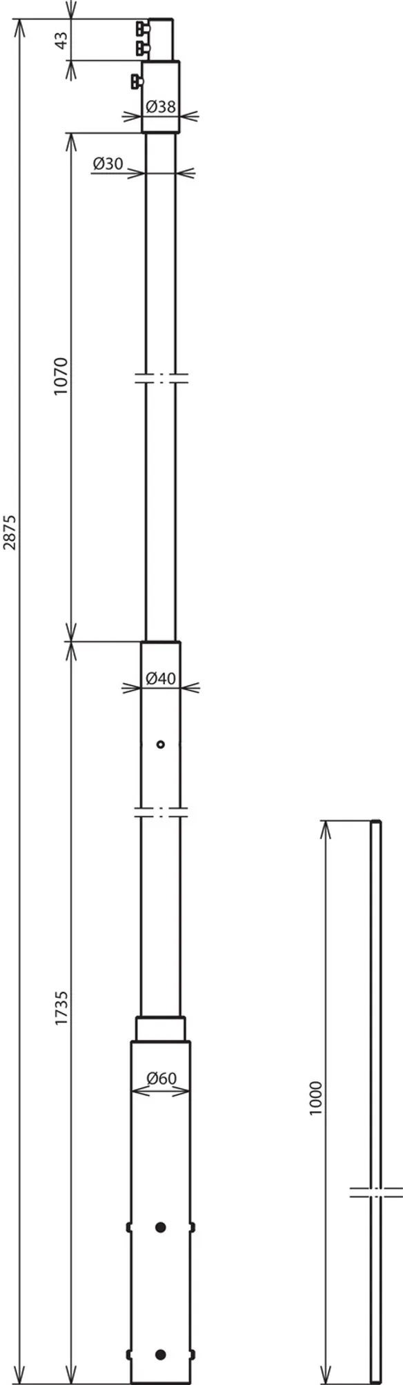 Length of supporting tube 2875 mm