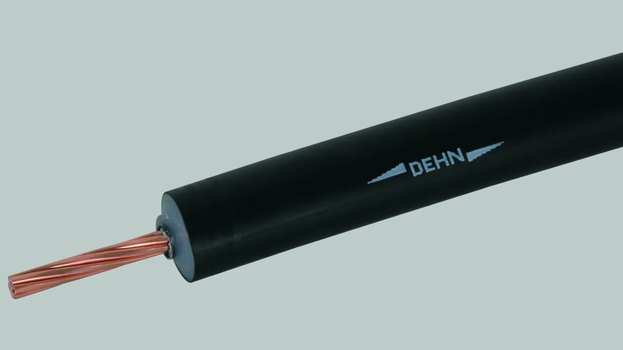 High-voltage-resistant, insulated down conductor for keeping the separation distance to electrically conductive parts according to IEC/EN 62305-3.